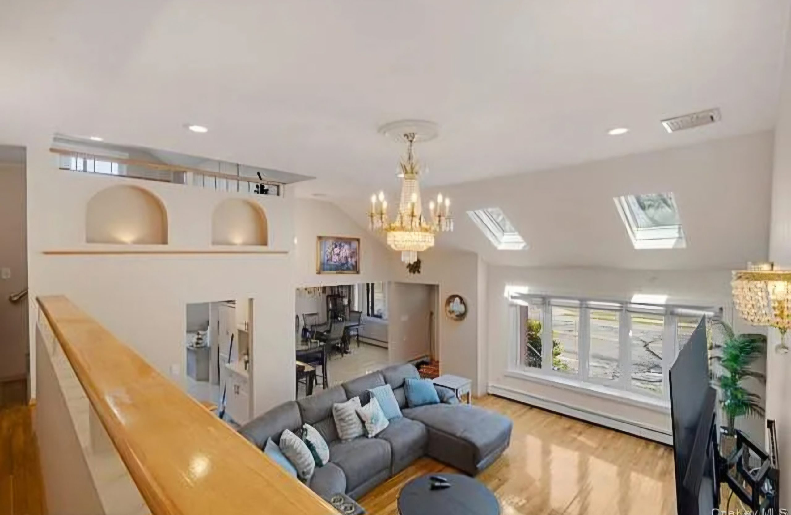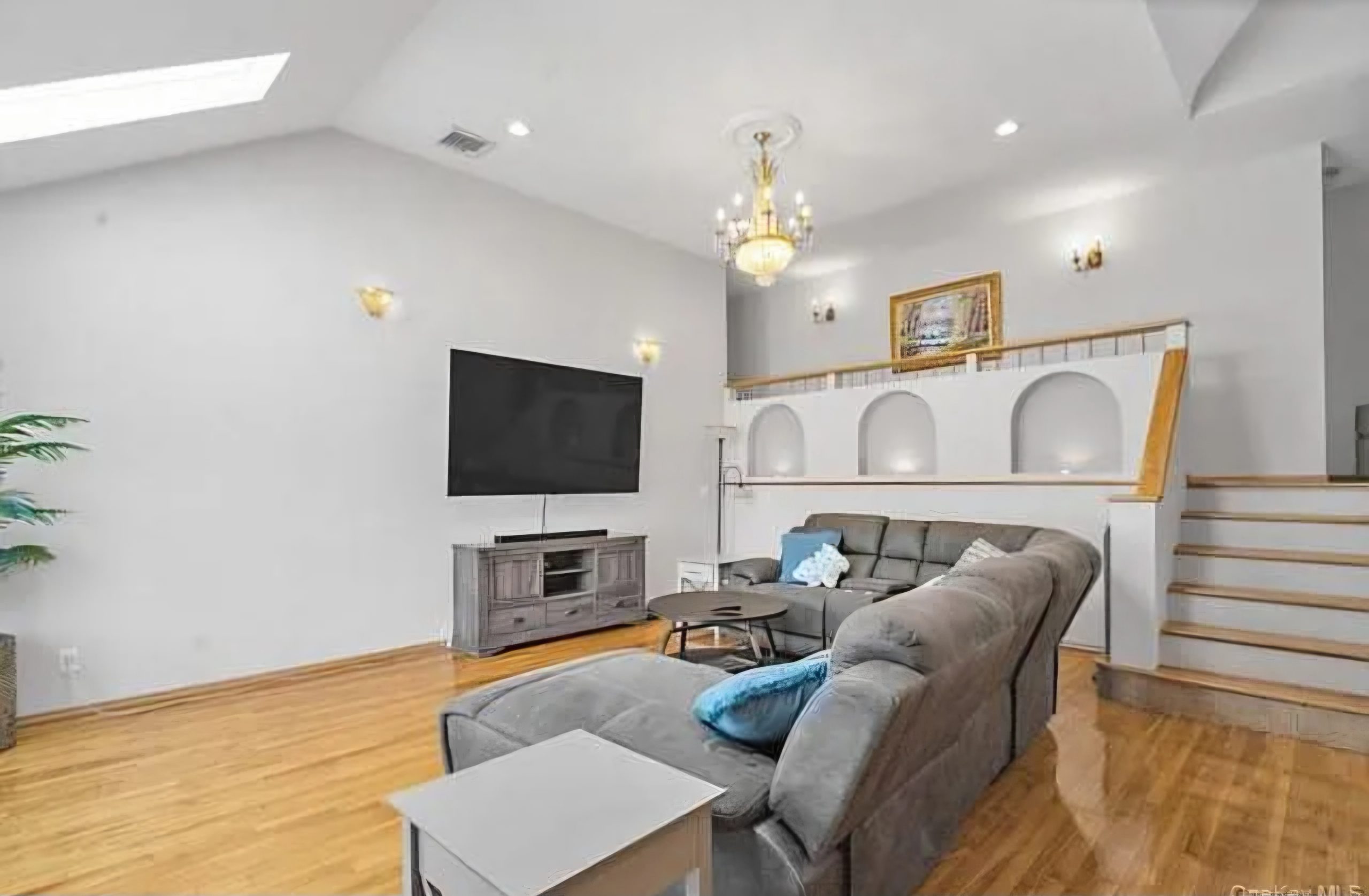 Lower levels of the home provide additional living space, including a cozy entertainment area, extra bedrooms, and bathrooms. This layout offers flexibility for extended family living or private guest accommodations.
